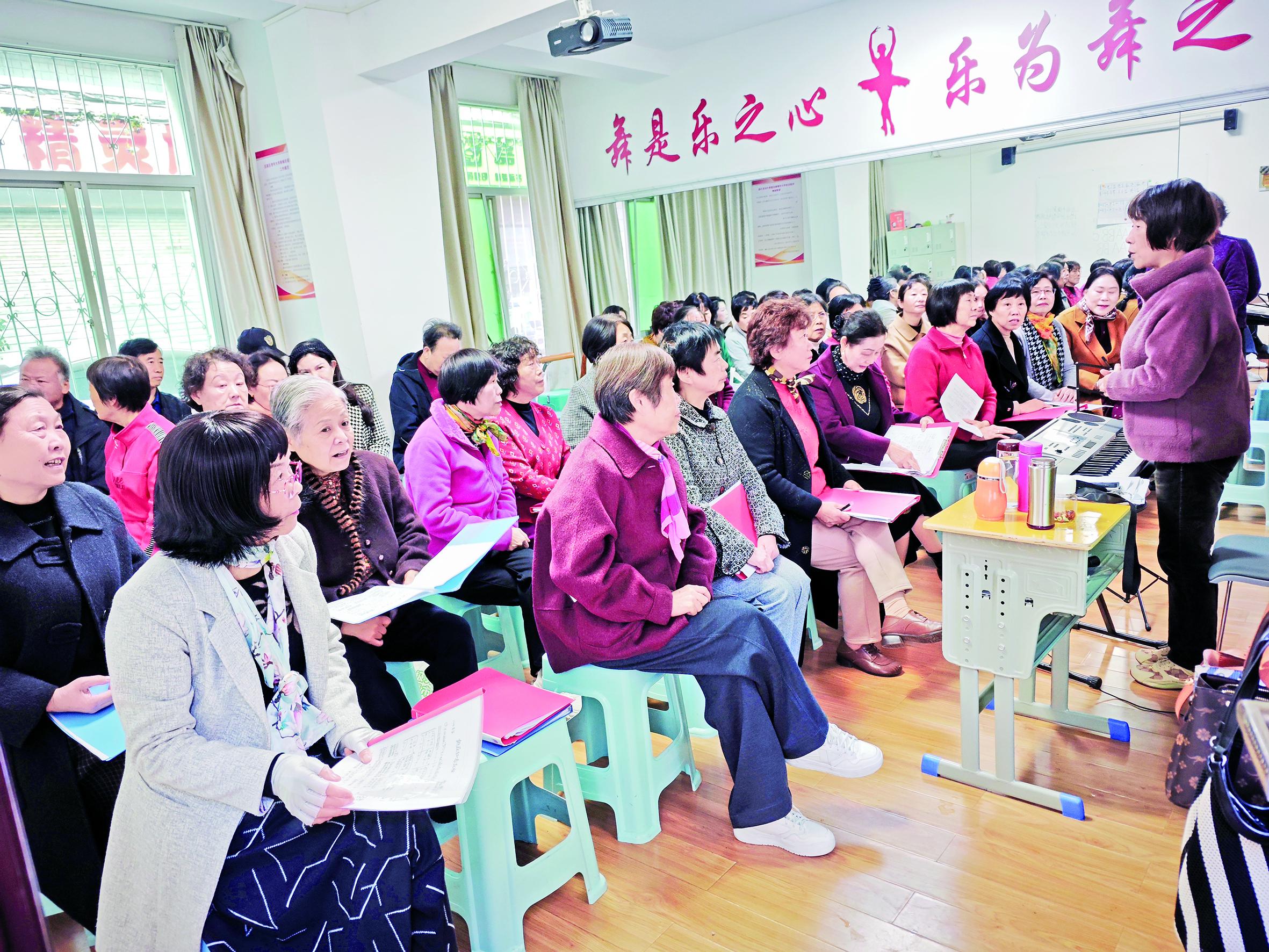 居民在育才社區(qū)老年大學(xué)聲樂班上課