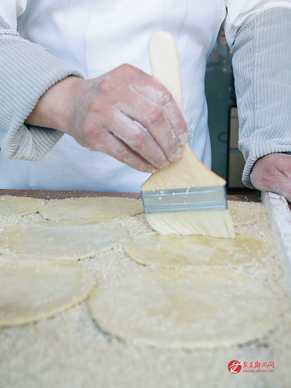 其實(shí)這餅的長(zhǎng)處,不用故事也說(shuō)得清——它耐放。安康多山,從前出門難,走一趟商路要一兩個(gè)月,路上沒(méi)有飯鋪,全靠干糧頂著。尋常的餅放幾天就硬了、霉了,炕炕饃卻能在自然條件下擱上三個(gè)月,還不變味。這里頭的道理,大概在油酥和火候上。