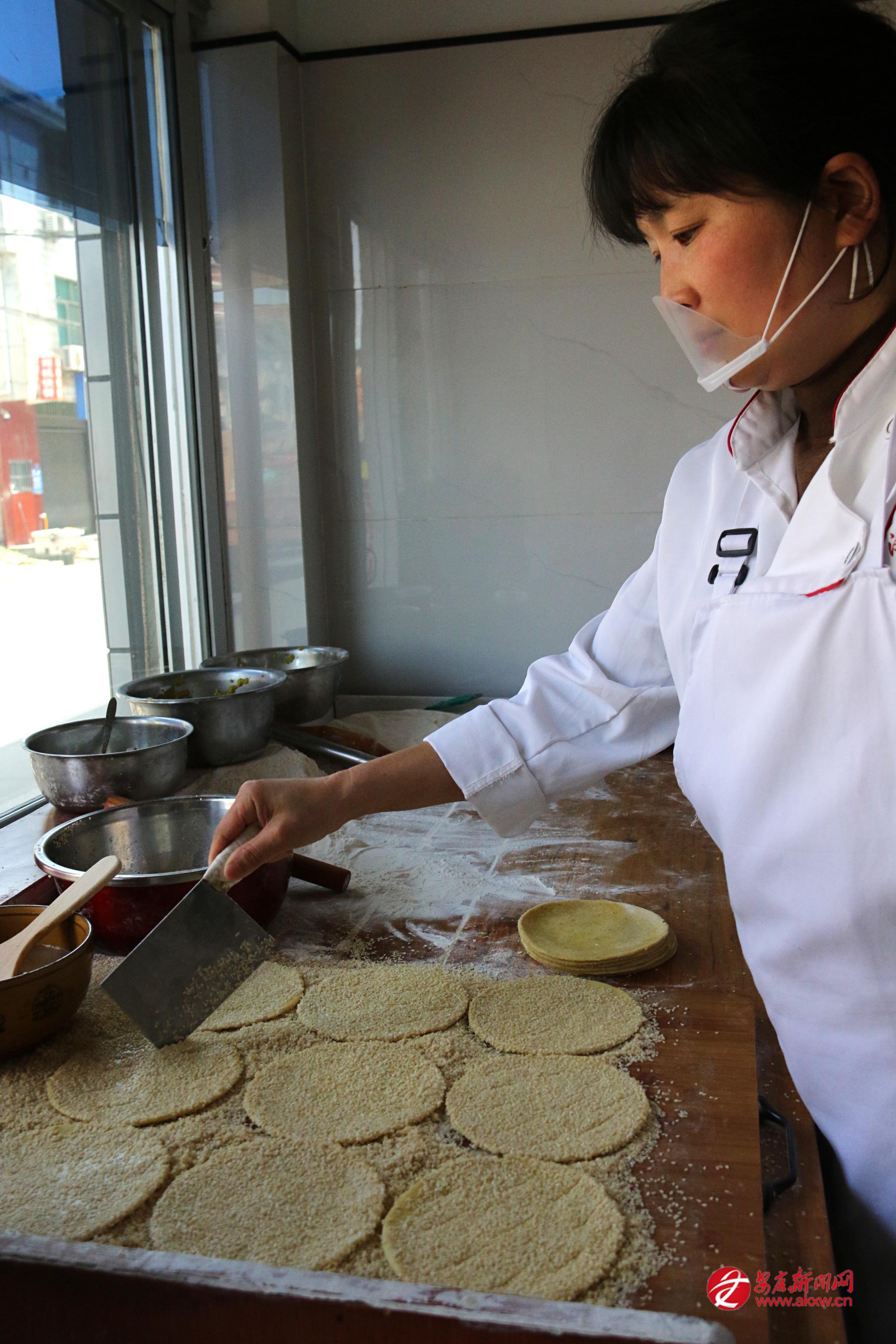 炕炕饃最講究的是“酥”。這酥不是靠油多硬炸出來(lái)的,而是用油酥一層一層疊進(jìn)去的。做油酥得用豬油和菜油兩樣,再配上五香粉,小火炒得噴香。面團(tuán)是老面發(fā)的,揉到光潤(rùn),再把油酥裹進(jìn)去,搟開(kāi),折起,再搟開(kāi),反復(fù)好幾回。這時(shí)候的面已經(jīng)有了一層層薄薄的紋理,像書(shū)頁(yè)似的。搟好的餅坯中間薄、四周略厚,抹一層水,粘上白芝麻——可以只粘一面,叫“一面麻”;也可以兩面都粘,叫“二面麻”。然后放進(jìn)一種特制的鐵鏊子里,上下都有炭火,夾著慢慢炕。中間還得翻一兩次身。