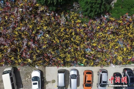 資料圖:堆積如山的共享單車。中新社記者 李進(jìn)紅 攝