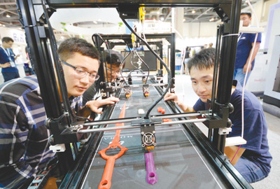 | 2017中國增材制造大會暨展覽會7月在杭州國際博覽中心舉行。圖為觀眾參觀一臺生產(chǎn)型3D打印機。 |