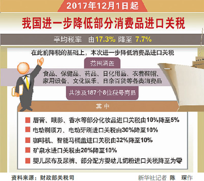 以2017年12月1日施行的稅收調(diào)整來(lái)說(shuō),財(cái)政部相關(guān)負(fù)責(zé)人指出,降低關(guān)稅為擴(kuò)大消費(fèi)品進(jìn)口、降低消費(fèi)品進(jìn)口成本創(chuàng)造了有利的條件。降低消費(fèi)品關(guān)稅釋放出擴(kuò)大消費(fèi)品進(jìn)口的積極信號(hào)。