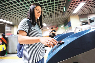 | 隨著中國在移動互聯(lián)網(wǎng)領(lǐng)域的技術(shù)進(jìn)步與應(yīng)用普及,基于手機(jī)的支付方式正在走進(jìn)生活的每個角落。圖為一位北京市民通過刷手機(jī)直接進(jìn)站乘坐地鐵。 |