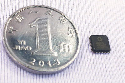 | 2017年9月16日,全球首個(gè)支持新一代北斗三號(hào)信號(hào)體制的高精度導(dǎo)航定位芯片正式發(fā)布。圖為支持新一代北斗三號(hào)信號(hào)體制的高精度導(dǎo)航定位芯片與1角硬幣的對(duì)比照片。 |