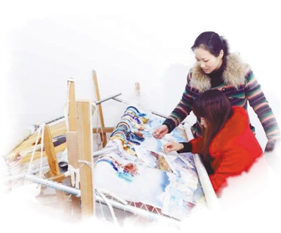 這張照片拍攝的是我在指導(dǎo)培訓(xùn)班的學(xué)員學(xué)習(xí)亂針繡。我從事亂針繡快20年了。記得當(dāng)年我從父親手里接過繡花針時,自己琢磨出了更適合人物肖像的新繡法,用針作畫,作品接連獲“百花杯”等獎項。我的一幅作品《奧運會水上場館圖》,還被作為特殊禮物贈送給了國際奧委會終身名譽主席薩馬蘭奇。