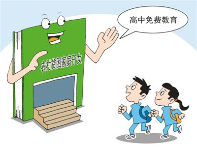 在高中教育包括職業(yè)教育階段,從2012年秋季學(xué)期起,國家對(duì)所有農(nóng)村學(xué)生、家庭經(jīng)濟(jì)困難學(xué)生等群體免除學(xué)費(fèi),并對(duì)連片特困地區(qū)學(xué)生實(shí)現(xiàn)了100%覆蓋。