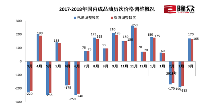 人民網(wǎng)北京3月28日電 (朱江)今日,記者從隆眾、卓創(chuàng)社會(huì)監(jiān)測(cè)機(jī)構(gòu)獲悉,3月29日零時(shí)將上調(diào)汽柴油限價(jià),每噸汽油上調(diào)170、柴油上調(diào)165元,折合每升89#0.13、92#0.13、95#0.14、0#0.14元。隆眾原油分析師李彥表示,本次調(diào)價(jià)是今年第三次上調(diào),本次調(diào)價(jià)過(guò)后,2018年成品油調(diào)價(jià)將呈現(xiàn)“三漲兩跌一擱淺”的格局。