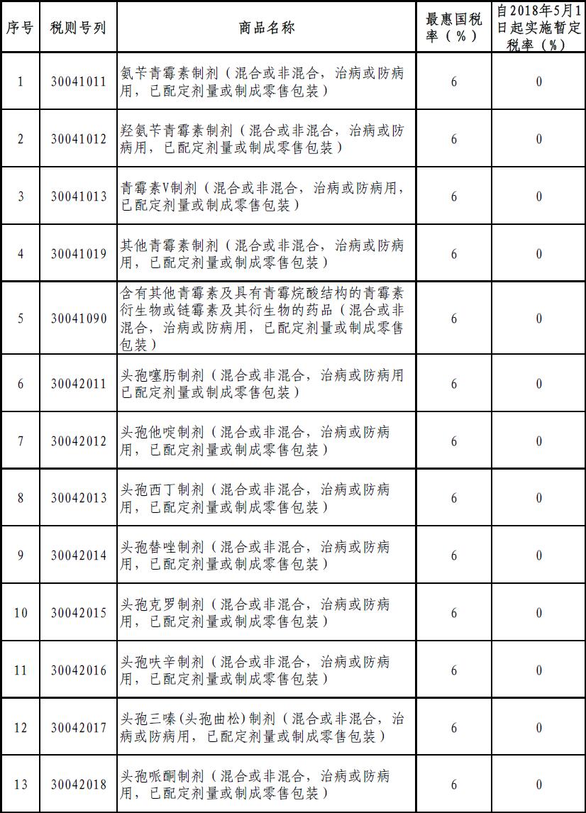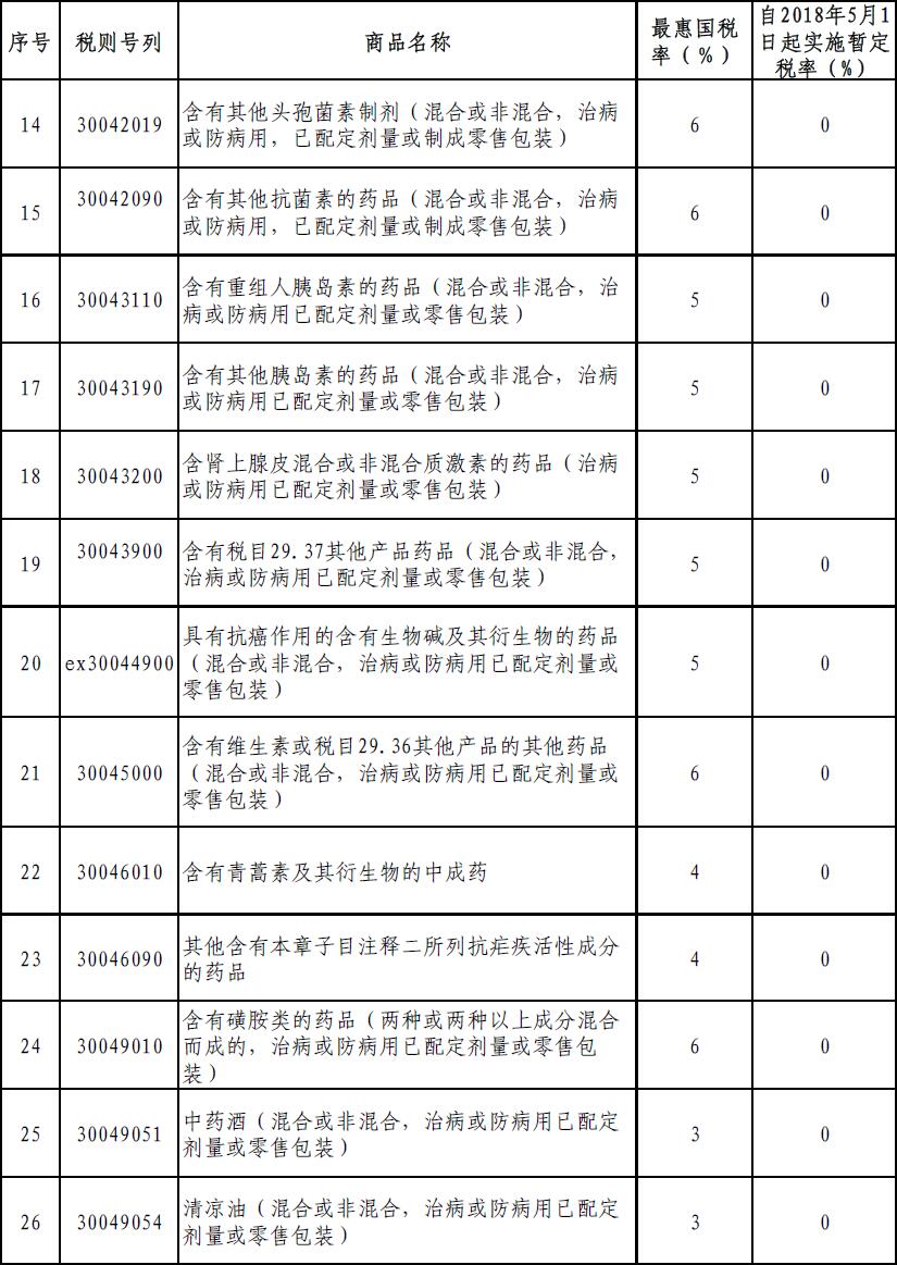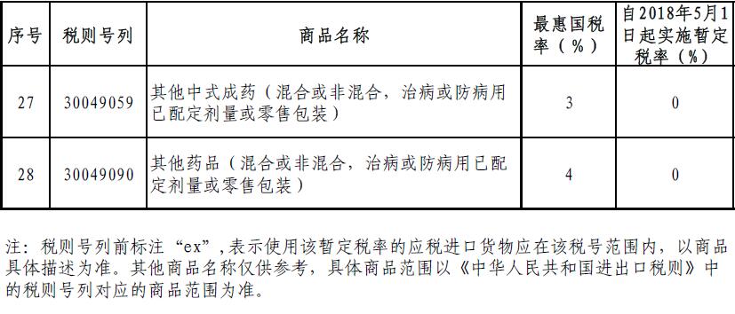 《公告》指出,根據(jù)《中華人民共和國進出口關(guān)稅條例》相關(guān)規(guī)定,為減輕廣大患者特別是癌癥患者藥費負擔并有更多用藥選擇,自2018年5月1日起,以暫定稅率方式將包括抗癌藥在內(nèi)的所有普通藥品、具有抗癌作用的生物堿類藥品及有實際進口的中成藥進口關(guān)稅降為零。