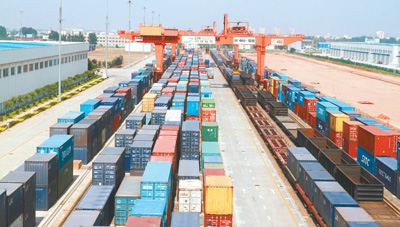 上個月,青島獲批創(chuàng)建中國—上海合作組織地方經(jīng)貿(mào)合作示范區(qū)。站在青島多式聯(lián)運海關(guān)監(jiān)管中心的大看板前,中鐵聯(lián)集青島分公司常務(wù)副總經(jīng)理魏學倫自豪地說,青島加強與上合組織合作擁有獨特條件,最突出的就是“陸海空鐵”多式聯(lián)運的物流優(yōu)勢。陸——有青島傳化智能公路港;海——世界知名港口青島港距離園區(qū)僅20公里;空——膠東國際機場明年將投入運營;鐵——青島多式聯(lián)運海關(guān)監(jiān)管中心已開通中亞班列、中韓快線、中蒙班列、東盟專線、中歐(青島)國際班列。登上20多米高的軌道龍門吊車平臺,只見腳下一排排顏色各異的集裝箱如同五彩長龍靜臥在鐵道上,蓄勢待發(fā)。