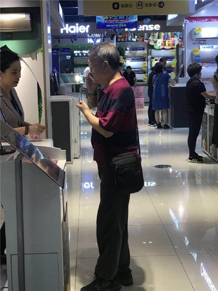 一位年過六旬的老人,一會(huì)兒工夫向一位空調(diào)導(dǎo)購員鞠躬五次,每次90度。這一幕,發(fā)生在南京新街口蘇寧易購云店的空調(diào)專區(qū)。