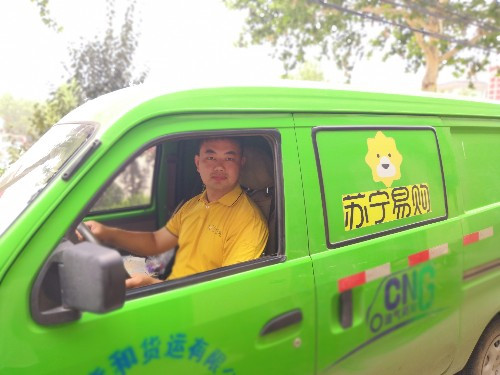 蘇寧物流快遞站站長王少貝開車去村中送貨