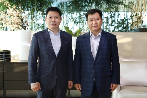 蘇寧控股集團(tuán)董事長張近東在蘇寧總部會晤華為消費(fèi)者業(yè)務(wù)CEO余承東