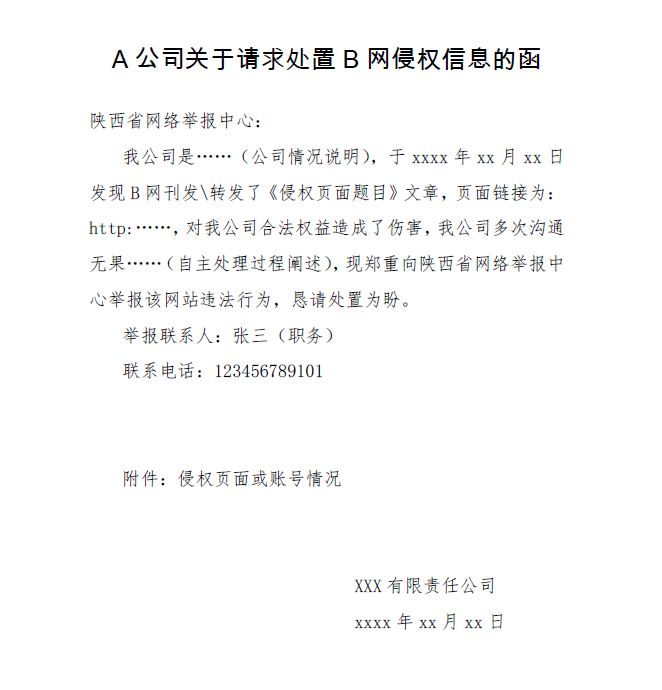 3.網(wǎng)絡(luò)侵權(quán)信息舉報(bào)請通過“侵權(quán)類”舉報(bào)入口提交,舉報(bào)人須實(shí)名舉報(bào),同時(shí)必須提交請求維權(quán)處置函件和詳實(shí)的舉證材料。陜西省網(wǎng)絡(luò)舉報(bào)中心受理省內(nèi)各級政府組織、企事業(yè)單位和個(gè)人的互聯(lián)網(wǎng)侵權(quán)舉報(bào),舉報(bào)行為執(zhí)行者須為政府、企事業(yè)單位等組織的責(zé)任部門或舉報(bào)主體本人,并清晰陳述侵權(quán)事實(shí)、侵權(quán)信息頁面鏈接、請求處置訴求等信息,舉證材料要盡可能詳實(shí)、完備。