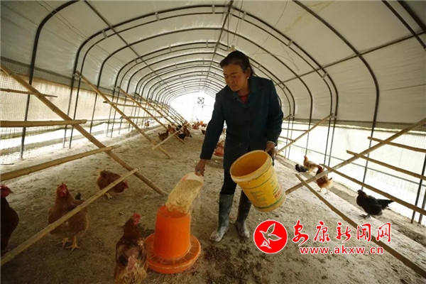 騰靜是我社的一名資深校對(duì),2017年初她帶著精準(zhǔn)扶貧的艱巨任務(wù),來(lái)到了貧困戶劉合英家。幾年前劉合英丈夫因病去逝,留下三個(gè)上學(xué)的孩子和治療欠下的外債。騰靜了解情況后,首先爭(zhēng)取到國(guó)家針對(duì)貧困戶生的助學(xué)款,然后幫助劉合英參加了國(guó)家扶貧搬遷免費(fèi)交鑰匙工程。之后,在村干部的幫助下貸了款,建了雞舍和豬圈,買(mǎi)了30只雞和兩頭豬仔。