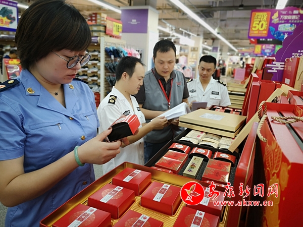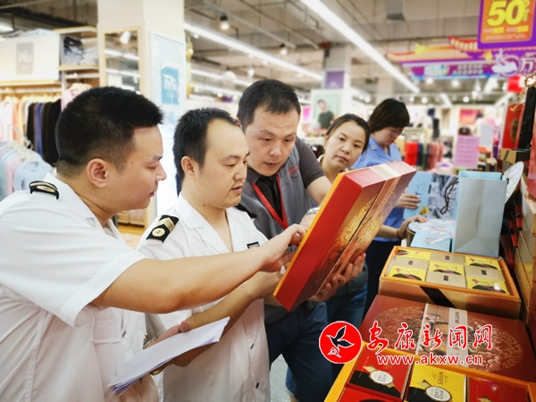 在各商超及月餅現(xiàn)場制售店,執(zhí)法人員嚴格檢查經(jīng)營戶是否證照齊全、月餅是否標明廠名、生產(chǎn)日期、保質(zhì)期等數(shù)據(jù),是否存在以次充好、摻雜使假等情況。同時指導(dǎo)督促月餅經(jīng)營者健全進銷貨臺賬、索證索票制度,從源頭上把好月餅質(zhì)量關(guān)。