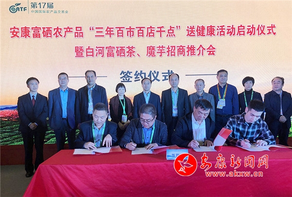 本網(wǎng)訊 11月15日,借助第十七屆中國(guó)國(guó)際農(nóng)產(chǎn)品交易會(huì)平臺(tái),我市富硒農(nóng)產(chǎn)品“三年百市百店千點(diǎn)”華中地區(qū)送健康活動(dòng)啟動(dòng)儀式暨白河富硒茶、魔芋招商推介活動(dòng),在江西南昌綠地國(guó)際博覽中心舉行。副市長(zhǎng)魯琦出席活動(dòng)并致辭,省農(nóng)業(yè)農(nóng)村廳總農(nóng)藝師戴建昌宣布活動(dòng)啟動(dòng)。