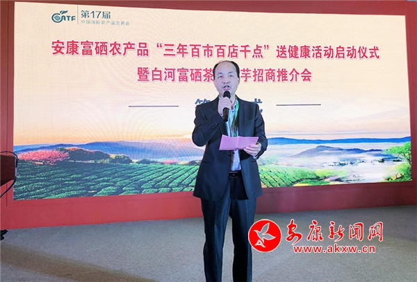 魯琦從生態(tài)環(huán)境、資源稟賦、區(qū)位優(yōu)勢(shì)等方面介紹了安康市情和現(xiàn)代農(nóng)業(yè)發(fā)展情況,重點(diǎn)推介了安康富硒茶、富硒魔芋等特色富硒農(nóng)產(chǎn)品。他表示,安康被譽(yù)為“世界硒源、中國(guó)硒谷”,天然富硒土壤生長(zhǎng)出來(lái)的富硒農(nóng)產(chǎn)品,是人體天然補(bǔ)硒、健康養(yǎng)生的最佳途徑。依托天然富硒資源優(yōu)勢(shì),全市正聚焦富硒產(chǎn)業(yè)綜合產(chǎn)值2000億元目標(biāo),全力打造“世界硒源地,國(guó)際健康城”。舉辦本次活動(dòng)旨在搭建經(jīng)貿(mào)交流平臺(tái),讓更多的人認(rèn)識(shí)安康,共享安康富硒茶、富硒魔芋等優(yōu)質(zhì)富硒農(nóng)產(chǎn)品。魯琦向在場(chǎng)100余位當(dāng)?shù)乜蜕碳吧鐣?huì)各界發(fā)出誠(chéng)摯邀請(qǐng),真誠(chéng)期待和歡迎各界人士到安康投資富硒產(chǎn)業(yè),共建全國(guó)富硒產(chǎn)業(yè)之鄉(xiāng)、齊為人類健康服務(wù)。