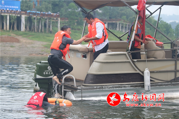 本網(wǎng)訊(記者 羅先安 實習記者 劉淵)6月25日,市十四運競委會在瀛湖翠屏島南側(cè)公開水域成功舉行十四運會水上項目應急救援演練,以進一步提高水上安全應急救援能力,檢驗水上交通應對突發(fā)事件的快速反應、應急處置和協(xié)調(diào)作戰(zhàn)能力,確保十四運會馬拉松游泳賽事萬無一失。省交通運輸廳廳長、十四運會組委會交通保障部部長夏曉中,市委常委、副市長劉建平現(xiàn)場觀摩了演習活動并分別講話、致辭。