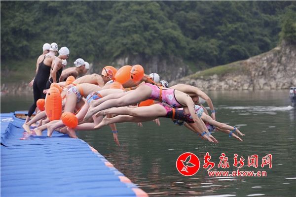上午8時(shí)許運(yùn)動(dòng)員從駐地到達(dá)瀛湖,嚴(yán)格按照檢錄程序進(jìn)入比賽場(chǎng)地。上午9時(shí),在省組委會(huì)體展中心激情四射的現(xiàn)場(chǎng)解說(shuō)中,隨著一聲哨響,來(lái)自陜西浩沙隊(duì)的8名專業(yè)選手和安康市的12名業(yè)余選手精神抖擻縱身躍入水中,平靜的江面瞬間浪花飛濺。只見游泳健兒們一個(gè)個(gè)你追我趕、奮勇爭(zhēng)先,充分展示著健美的身軀、頑強(qiáng)的意志。經(jīng)過(guò)120多分鐘的激烈角逐,劉魯鵬、屈芳分獲專業(yè)組10公里馬拉松游泳男女第一名,周辰驍、王子一分獲公開組3公里男女第一名。
