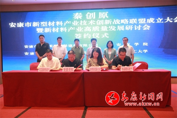 會上,樊瑛華、孟平共同為安康市新型材料產(chǎn)業(yè)技術(shù)創(chuàng)新戰(zhàn)略聯(lián)盟揭牌,博創(chuàng)宏遠(yuǎn)新材料有限公司董事長、總經(jīng)理趙杰當(dāng)選聯(lián)盟理事長。舉行了校企簽約儀式,簽訂技術(shù)合作協(xié)議5項(xiàng)。西北工業(yè)大學(xué)教授、博士生導(dǎo)師黃英、天津大學(xué)教授、博士生導(dǎo)師江文革分別作了主旨演講。