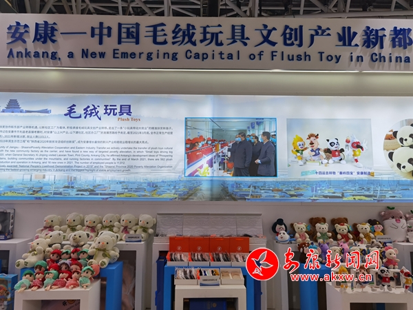 今年五月,第五屆絲綢之路國際博覽會暨中國東西部合作與投資貿(mào)易洽談會在西安舉行。走進(jìn)安康展館,毛絨玩具搭建的小山格外顯眼,十四運(yùn)吉祥物“秦嶺四寶”占據(jù)C位,展廳四周也用毛絨玩具娃娃進(jìn)行點(diǎn)綴。前來拍照、采購、咨詢的市民絡(luò)繹不絕。不少企業(yè)現(xiàn)場接到訂單。