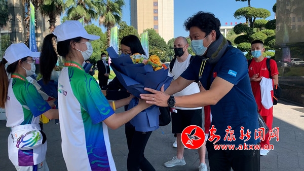 “各位領(lǐng)隊(duì)、教練、運(yùn)動(dòng)員,歡迎來到陜西省安康市參加十四運(yùn)會(huì)馬拉松游泳項(xiàng)目比賽。我代表競(jìng)委會(huì)向大家表示熱烈的歡迎,祝大家在安康參賽期間工作順利、生活愉快、勇創(chuàng)佳績(jī)。”隨后,現(xiàn)場(chǎng)志愿者向報(bào)到的運(yùn)動(dòng)隊(duì)送上鮮花。kxP安康新聞網(wǎng)