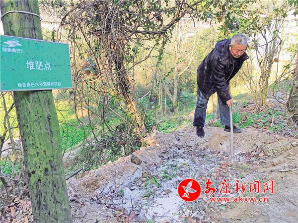 “自從開始做小流域治理這個(gè)工作,綠色秦巴環(huán)保公益服務(wù)中心就鼓勵(lì)村民使用有機(jī)肥,人工除草,盡量不使用除蟲劑以及除草劑,避免化肥、除蟲劑和除草劑對水源造成潛在污染。”李輝智告訴記者,家里現(xiàn)在地里施肥全靠自己弄的農(nóng)家肥。說著他拉起記者走到路邊,用鋤頭翻開一個(gè)2米左右的土坑,坑里漚的正是他的堆肥。