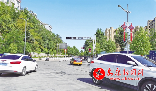6月27日,安康城區(qū)黃溝路和漢江東路路口,交管部門已經(jīng)給這里加裝了隔離護(hù)欄,交通狀況明顯改善。(記者 潘潤生 攝)3jK安康新聞網(wǎng)