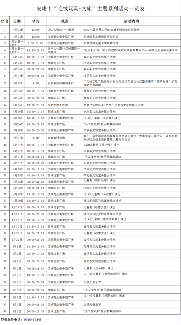 安康市“毛絨玩具+文旅”主題系列活動一覽表