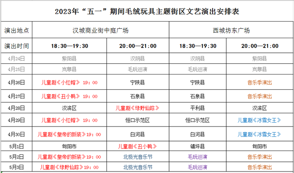 一開場就是重點,小編也不和大家繞彎子了,這個“五一”假期來安康看節(jié)目,天天有好戲~