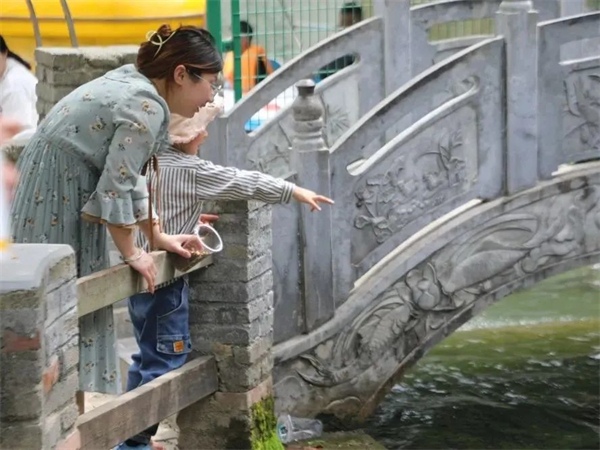 饒峰驛站的親子游樂園傳來孩子們的歡聲笑語,爛漫且文藝的月季花長(zhǎng)廊下坐滿了游客,高空漂流的入口排滿了長(zhǎng)隊(duì),小朋友在露營(yíng)燒烤的草坪上快樂奔跑、拍照留影,成為景區(qū)內(nèi)又一道美麗的風(fēng)景線。