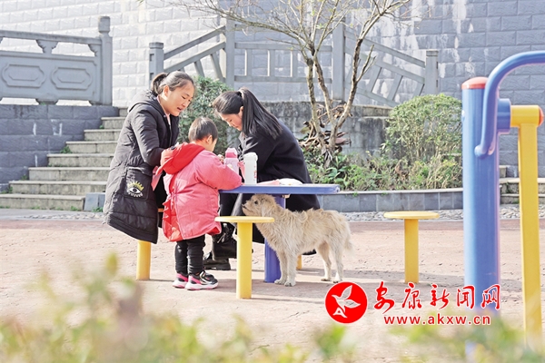 3月18日,大竹園鎮(zhèn)糧茶村,群眾在配套設(shè)施完善的集鎮(zhèn)游玩。周濬 攝