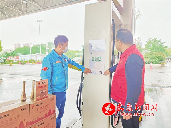 志愿者在加油站張貼宣傳頁r2s安康新聞網(wǎng)