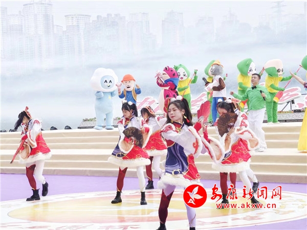 緊接而來(lái)的,是濃墨重彩的“龍頭點(diǎn)睛”環(huán)節(jié)。在重現(xiàn)金州兒女抗擊洪澇,奮力建設(shè)美好家園的歌舞表演后,請(qǐng)龍方陣邁著鏗鏘步伐,護(hù)送龍頭立于舞臺(tái)正中。主祭官站上高臺(tái),捋龍須,撣浮塵,三叩首,吟敬酒詞,依次指引完成祭龍、合龍儀式。此時(shí),9條祥龍飛舞而來(lái),18名來(lái)自基層一線的鄉(xiāng)村振興工作先進(jìn)典型、抗擊新冠疫情先進(jìn)個(gè)人、新民風(fēng)建設(shè)優(yōu)秀代表、冠名商代表、助力安康發(fā)展的企業(yè)家等走上舞臺(tái),為龍頭點(diǎn)睛。