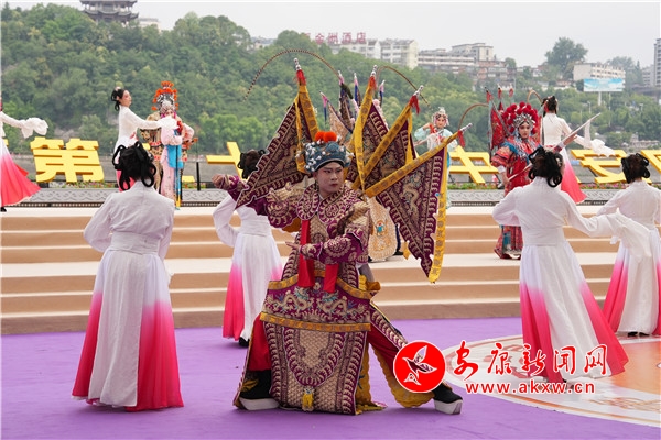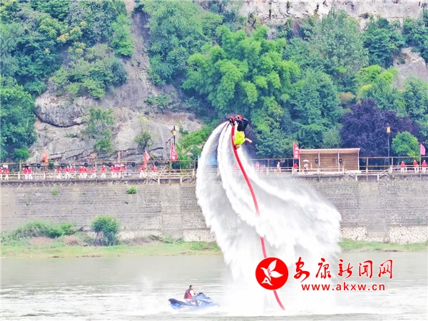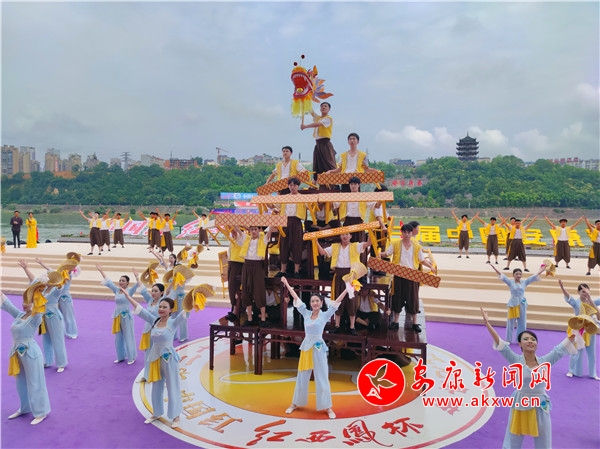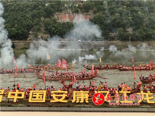 渾厚雄壯的“喊江調(diào)子”中,江面28艘龍舟抖擻精神、踏浪而來(lái),江岸健身龍表演同步登場(chǎng),朝氣蓬勃。歌舞《安安康康鬧龍舟》、陜南民歌聯(lián)唱《漢水歡歌》、龍舟橫渡、健身操《活力安康》配合摩托艇“水上飛人”、傳統(tǒng)漢劇《漢江上傳唱著漢調(diào)二黃》等精彩節(jié)目輪番上演,搶鴨子摸鯉魚(yú)、民俗舞蹈《方寸之間》等安康特有民俗節(jié)目將現(xiàn)場(chǎng)氛圍推上一輪又一輪高潮。最終,開(kāi)幕式在歌舞《幸福安康》中圓滿落下帷幕。