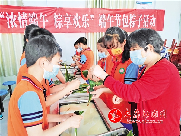 端午節(jié)前夕,石泉縣池河小學(xué)組織學(xué)生開展“濃情端午 粽享歡樂”勞動實踐體驗活動。 賈自強 攝
