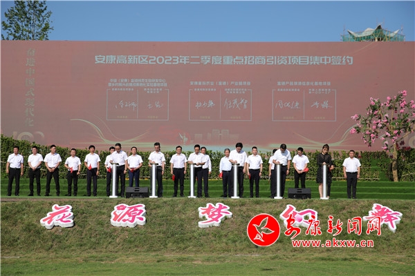 活動(dòng)現(xiàn)場,還組織開展了納新黨員集中宣誓和老黨員重溫入黨誓詞儀式;為“光榮在黨50年”的老黨員代表頒發(fā)了紀(jì)念章;為安康高新區(qū)“學(xué)思踐悟新思想、干闖當(dāng)頭譜新篇”知識競賽獲獎(jiǎng)?wù)哳C獎(jiǎng)。同時(shí),還舉行了“安康高新區(qū)2023年二季度重點(diǎn)招商引資項(xiàng)目集中簽約活動(dòng)”,總投資24.7億元的9個(gè)產(chǎn)業(yè)項(xiàng)目在現(xiàn)場領(lǐng)導(dǎo)、嘉賓的共同見證下進(jìn)行了集中簽約。