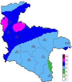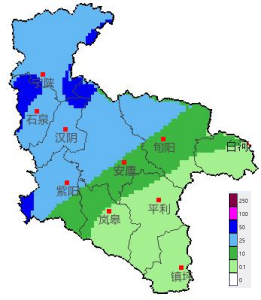 18日后半夜至19日白天:小雨轉中雨,中北部、西部(寧陜、石泉、漢陰、紫陽、漢濱中北部、旬陽北部)大雨,局地暴雨;