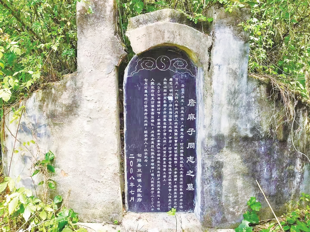 在旬陽市雙河鎮(zhèn)卷棚村老火紙場(chǎng),一個(gè)小地名叫做椅子灣的對(duì)面黃土梁上,安葬著一位當(dāng)?shù)卮迕窨诳谙鄠,傳了一輩又一輩,每一輩人都只知道這座無名烈士墓的墓主人,外號(hào)叫“詹麻子”,至于他是哪里人,生于何時(shí),犧牲時(shí)多大,有無兄弟姐妹與妻兒等,現(xiàn)如今仍無人知曉。