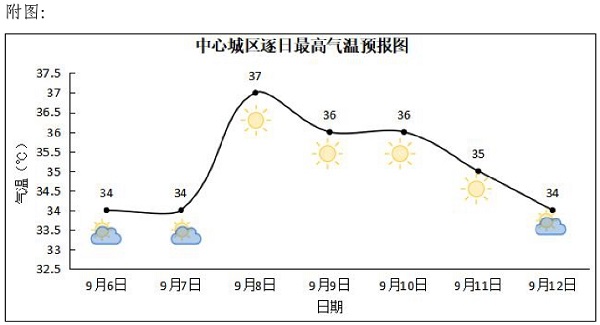 本網(wǎng)訊 9月6日12時,市氣象臺發(fā)布重要天氣報告:根據(jù)最新氣象觀測資料和數(shù)值預(yù)報分析,預(yù)計(jì)我市未來一周無區(qū)域性有效降水,仍維持晴熱少雨,8-11日將出現(xiàn)35℃以上高溫天氣,局地最高氣溫可達(dá)38℃以上;秦嶺和巴山沿線午后到夜間多分散性強(qiáng)對流性天氣,局地伴有短時強(qiáng)降水(10~30 毫米/小時)和雷暴大風(fēng)天氣。