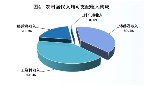 全市農(nóng)村居民人均可支配收入14403元,比上年增加1035元,增長7.7%。其中,工資性收入5742元,增長7.9%,占可支配收入的比重為39.9%;經(jīng)營凈收入2928元,增長6.7%,占比20.3%;財產(chǎn)凈收入68元,增長9.9%,占比0.5%;轉移凈收入5664元,增長8.1%,占比39.3%。