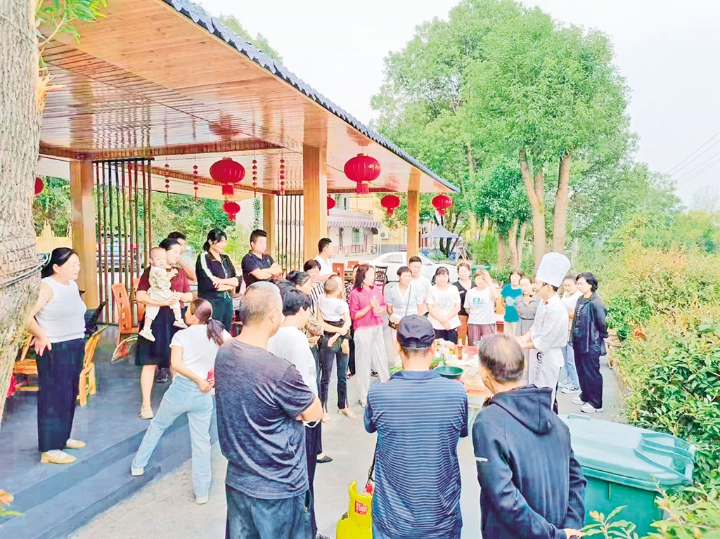 在張樂介紹的間隙,就有幾輛滿載的車輛依次來到山舍小院,客人的歡聲笑語很快將小院變得熱熱鬧鬧。在這里工作的服務(wù)員鄒玉梅是棗園村村民,得知山舍小院招工后,便來到這里務(wù)工。“我每天在這里就是洗菜切菜、招呼客人、打掃衛(wèi)生,一個(gè)月也有3000多元的收入。”雖然忙碌,但鄒玉梅對(duì)目前的生活很滿意,她還準(zhǔn)備介紹自己的親戚也來這里工作。