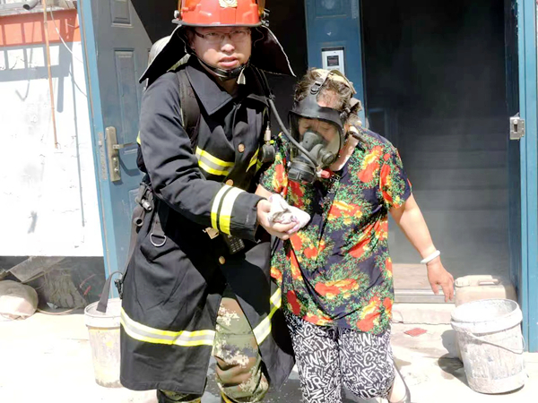 當找到被困的老人和嬰兒時,房間里已有煙霧涌入,多耽誤一秒就多一分危險。由于嬰兒呼吸力度較弱,他救呼吸面罩無法觸發(fā)供氣,而高壓送風或直接穿越煙霧層均可能造成窒息。李治隨即摘掉自己的呼吸器面罩,調(diào)低呼吸器送氣量,將面罩虛掩在嬰兒面部,抱緊嬰兒一路狂奔下樓,僅用3分鐘就將孩子安全交到家長手中。