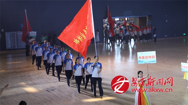 開幕式在暖場節(jié)目《幸福安康》的表演中拉開序幕。伴隨著高昂而優(yōu)美的旋律,儀仗隊隊員護擁著會旗與代表本屆市運會核心主題的標(biāo)語隊步伐矯健地入場。由全市教育、體育、科技、文化、衛(wèi)生五大領(lǐng)域的杰出代表組成的觀禮團代表從主席臺前走過。緊隨其后的裁判員隊伍、13個青少年組運動員代表團、32 個行業(yè)組運動員代表團闊步入場,展現(xiàn)出朝氣蓬勃的精神風(fēng)貌。入場儀式完畢,全場起立,面向國旗,奏唱中華人民共和國國歌。運動員代表與裁判員分別宣誓。
