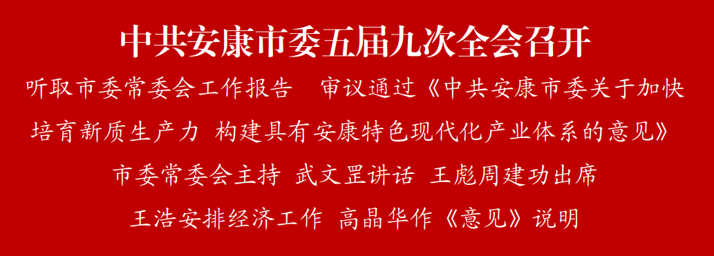 全會以習(xí)近平新時代中國特色社會主義思想為指導(dǎo),深入學(xué)習(xí)貫徹黨的二十大和二十屆二中、三中全會精神,貫通落實習(xí)近平總書記歷次來陜考察重要講話重要指示,全面落實省委十四屆八次全會部署,聽取市委常委會工作報告,審議通過《中共安康市委關(guān)于加快培育新質(zhì)生產(chǎn)力 構(gòu)建具有安康特色現(xiàn)代化產(chǎn)業(yè)體系的意見》,安排下半年重點任務(wù),達(dá)到了統(tǒng)一思想認(rèn)識、凝聚奮進(jìn)力量的目的。