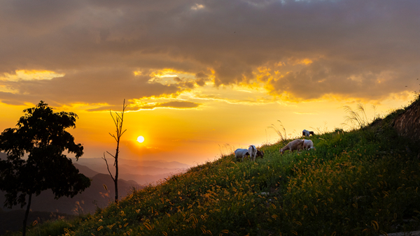 羊群在石泉縣饒峰鎮(zhèn)牛羊河村山上吃草。賈自龍 攝Xfq安康新聞網(wǎng)