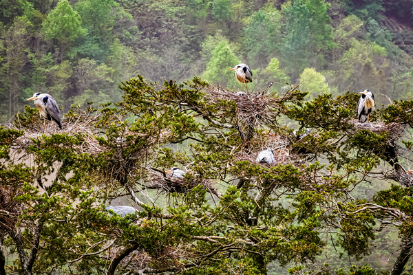 近年來,紫陽縣高橋鎮(zhèn)生態(tài)環(huán)境持續(xù)向好,吸引蒼鷺前來“安家”。 劉宗才 攝Xfq安康新聞網(wǎng)