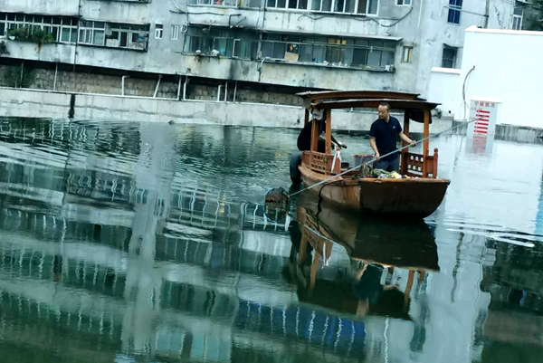 工作人員在寧陜縣長安河清理河內垃圾。 王輝 攝Xfq安康新聞網(wǎng)