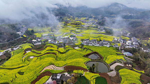 嵐皋縣城關鎮(zhèn)茅坪村的油葵競相開放。 屈蘭平 攝Xfq安康新聞網(wǎng)