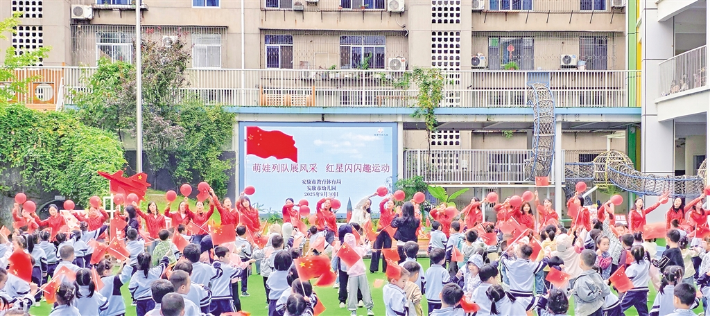 9月30日,安康市幼兒園舉辦“萌娃列隊(duì)展風(fēng)采 紅星閃閃趣運(yùn)動”國慶主題活動。 李生珍 攝